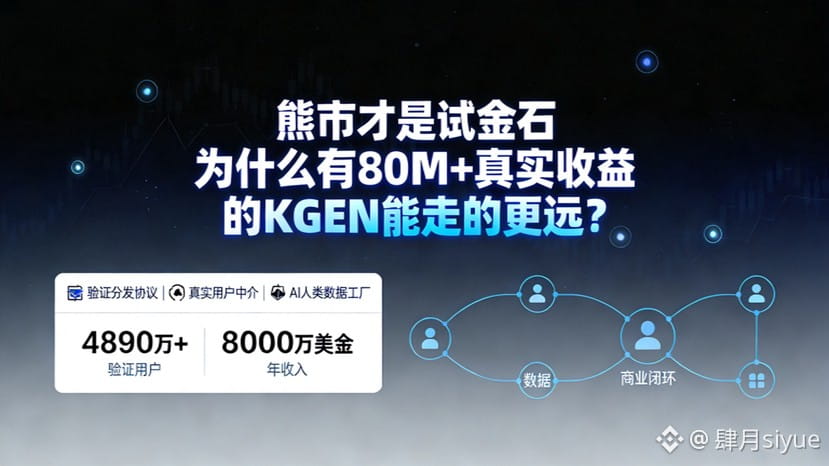 此时,KGEN这样的项目反而凸显价值。它不是靠讲故事生存,而是构建了一个有持续现金流的“验证分发协议”——通过严格的人类身份验证,为游戏、AI、DeFi等赛道提供真实用户和高质量数据。