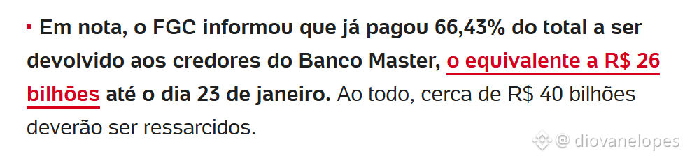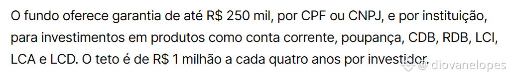 O FGC aparece como complemento: ele cobre até R$ 250 mil por CPF/CNPJ e por instituição (considerando principal + juros). Com a aquisição do Will Bank pelo Master, ambos passam a ser tratados como a mesma instituição para fins de cobertura — não há soma de R$ 250 mil + R$ 250 mil. Valores acima do teto ficam fora da garantia e podem depender de processos, com risco de perda.