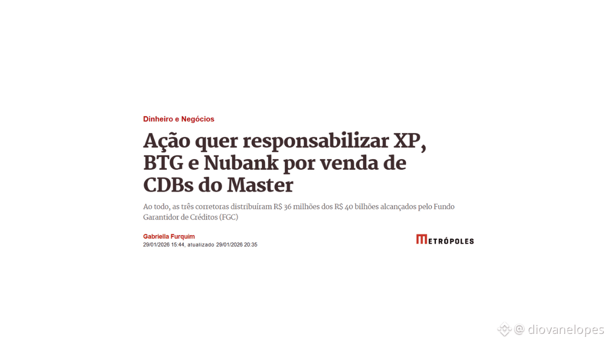 O foco aqui é direto: os processos que envolvem Nubank, XP e BTG por conta da venda de CDBs do Banco Master. O ponto central em discussão é a responsabilização dos intermediários na distribuição desses títulos e o quanto deveres de informação, adequação do produto ao perfil do cliente e comunicação de riscos foram (ou não) cumpridos. Independentemente do desfecho, o recado para o investidor já é claro.
