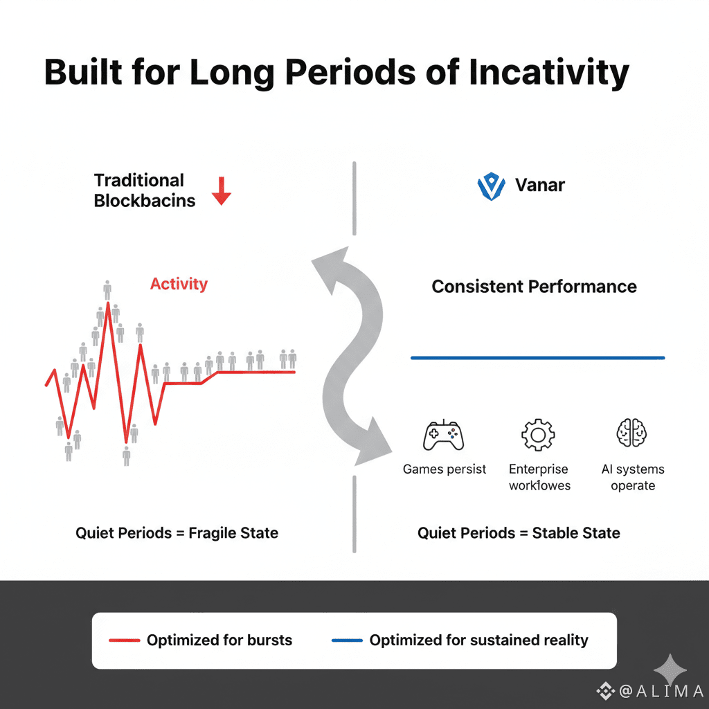 Vanar doesn’t appear to be chasing attention. It doesn’t rely on excitement to function. It stays usable during long stretches of inactivity.