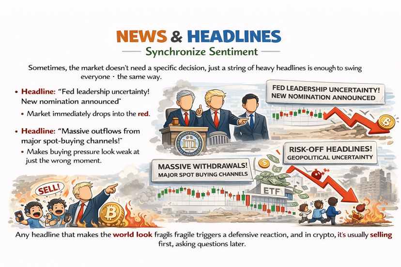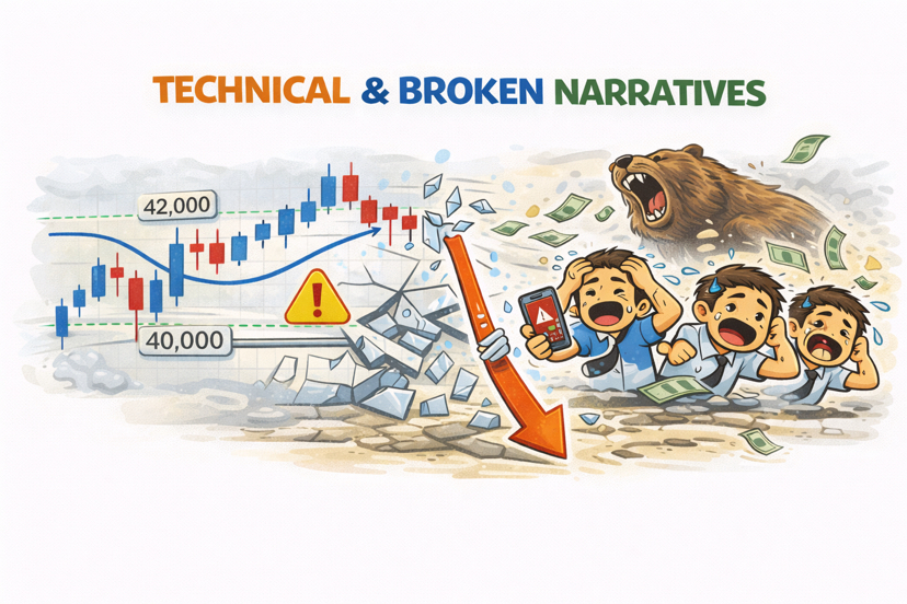 Từ khoảnh khắc đó, thị trường không cần thêm lý do mới để bán. Người ta chỉ cần một cái cớ để rời đi, để giảm tải áp lực tâm lý, để không phải canh chart trong lo lắng. Bán không phải vì chắc chắn sai, mà vì ở lại lúc này khiến họ mệt hơn là rời đi.