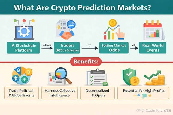 $BTC The rapid rise of prediction markets is deeply connected to the growth of the cryptocurrency ecosystem. Prediction markets allow users to forecast the outcomes of real-world events—such as elections, economic data, sports, and crypto prices—by trading on those outcomes. Crypto has provided the ideal technological and financial foundation for these platforms to scale globally.