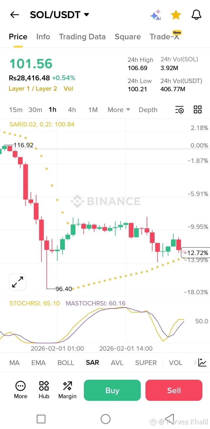 Solana is testing the nerves of every trader today! After a massive flush that sent prices toward $101, the $100 psychological level is the only thing standing between us and a deeper correction.