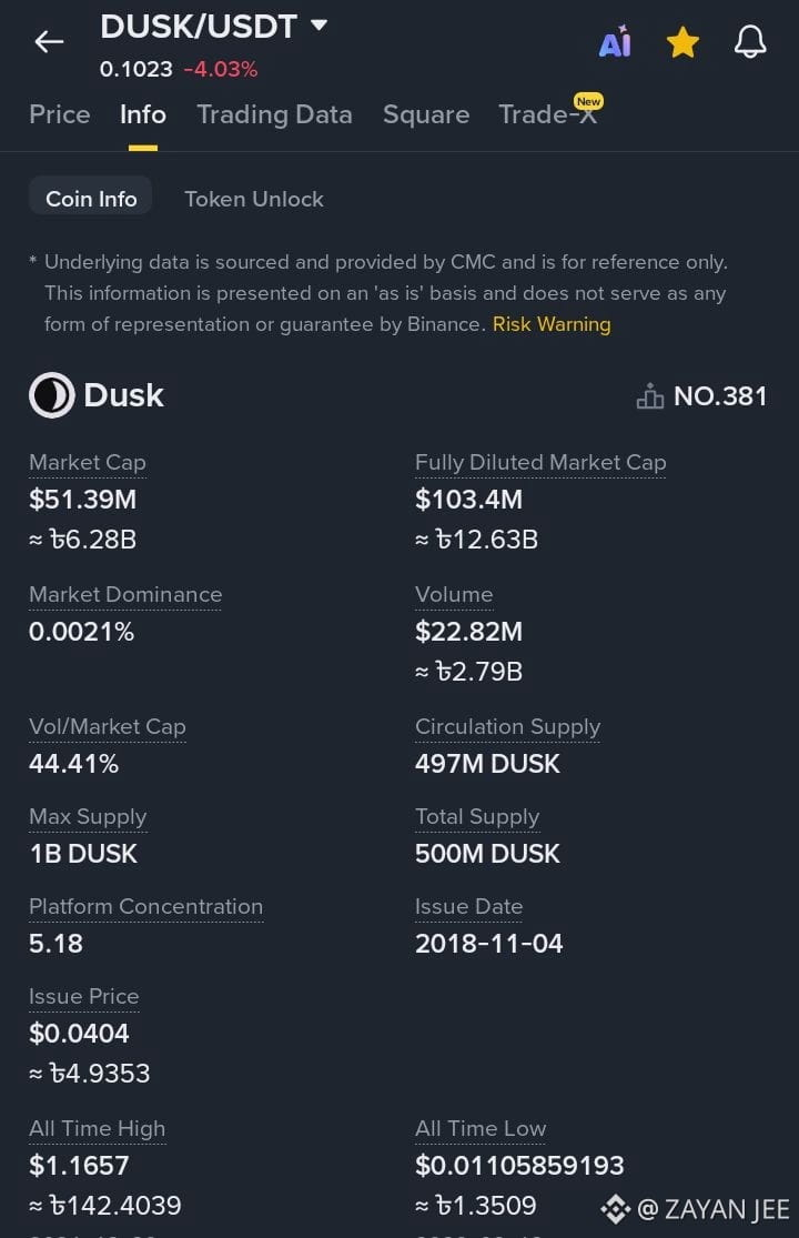 With a Market Cap of $51.39M and a Market Dominance of 0.0021%, DUSK is currently undervalued compared to its RWA peers. The fact that Large Buyers are still active despite the 4% price drop shows strong conviction in the $0.10 support zone.