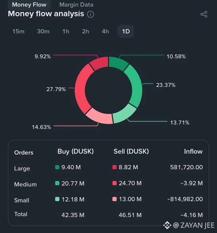 What does this mean? While "Small" and "Medium" traders (retail) are panic selling (Net Inflow: -3.92M and -814K), the whales are actually in Net Buying mode. This is classic "Smart Money" behavior—buying the dip that retail creates.