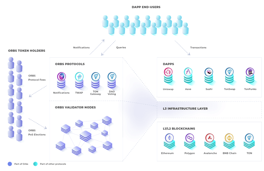 Orbs与现有的第一层和第二层协议协同工作,是一个专注于解决以太坊区块链可扩展性问题的第三层区块链。根据它们的网站,Orbs将其第三层视为“增强执行”,允许开发者在去中心化的无服务器云环境中开发智能合约。