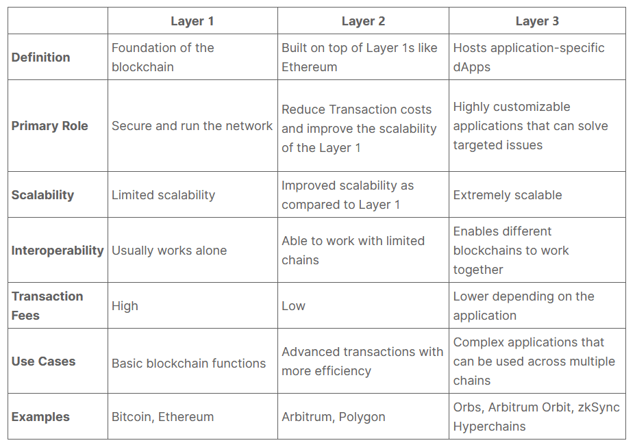 第三层协议的一些例子包括Orbs、Arbitrum Orbit和zkSync Hyperchains。