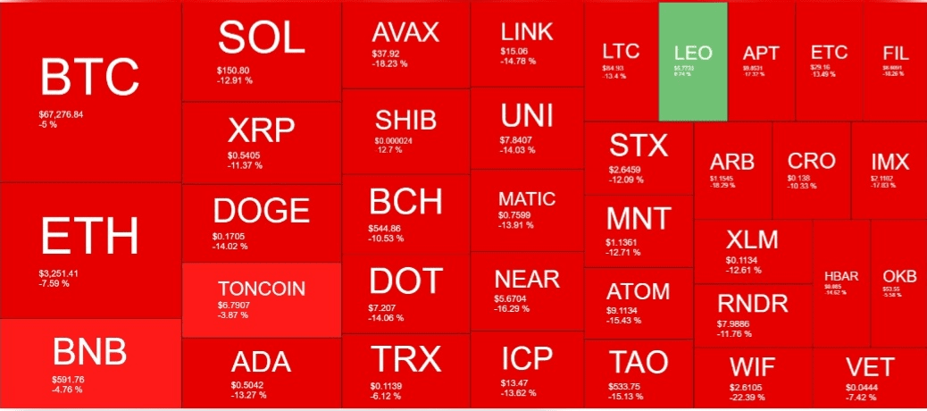 Bitcoin has managed to regain some traction and now stands above $67,000. Still, its market capitalization has plummeted ty $1.330 trillion on CG. The silver lining is that Bitcoin’s dominance has soared to 51.7% – gaining over 1% in a day.