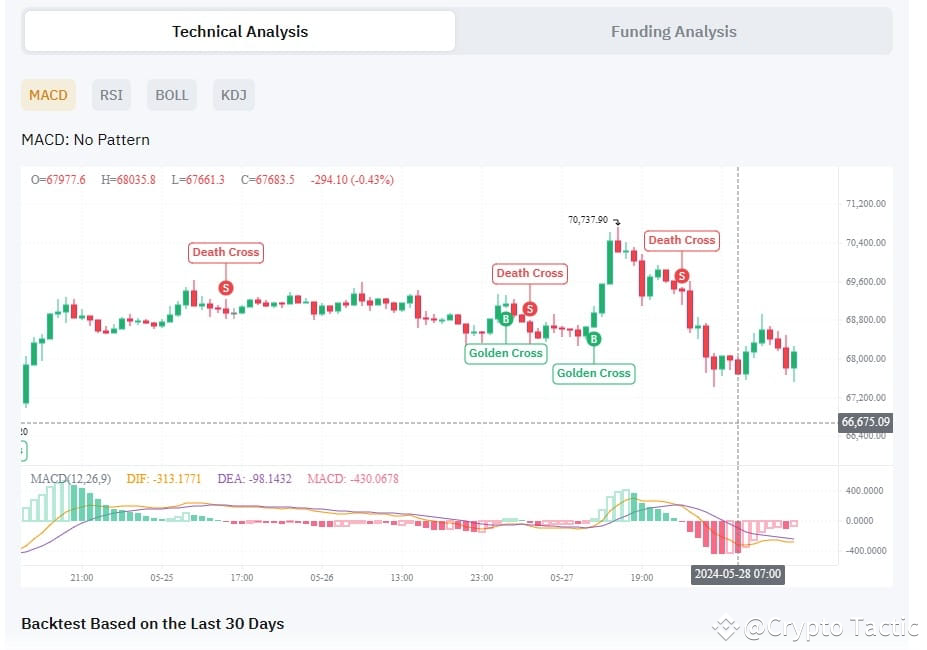 5. The latest BOLL support and resistance levels are $67,461.2 and $69,280.6, respectively.