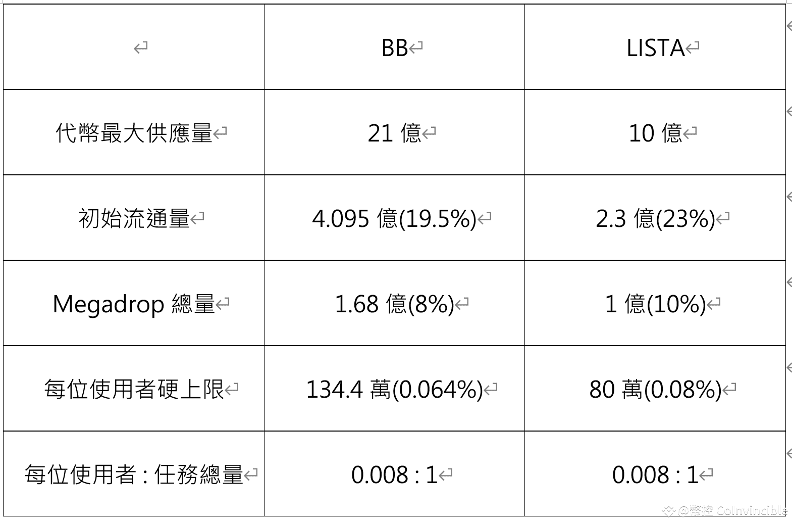 另外在這邊先附上 Megadrop 代幣之間的比較
