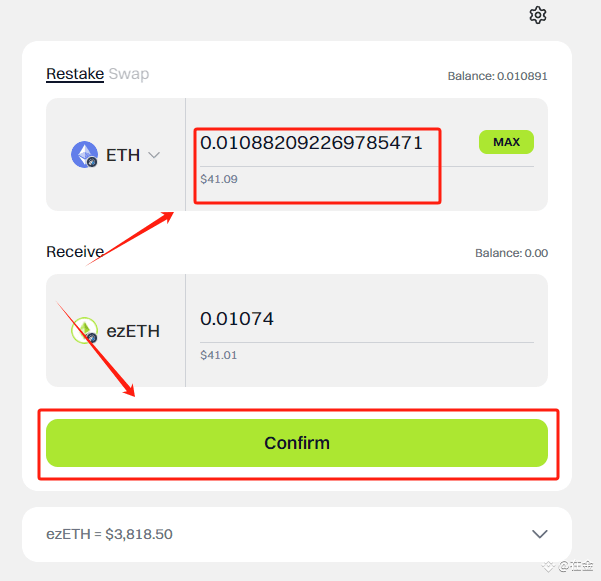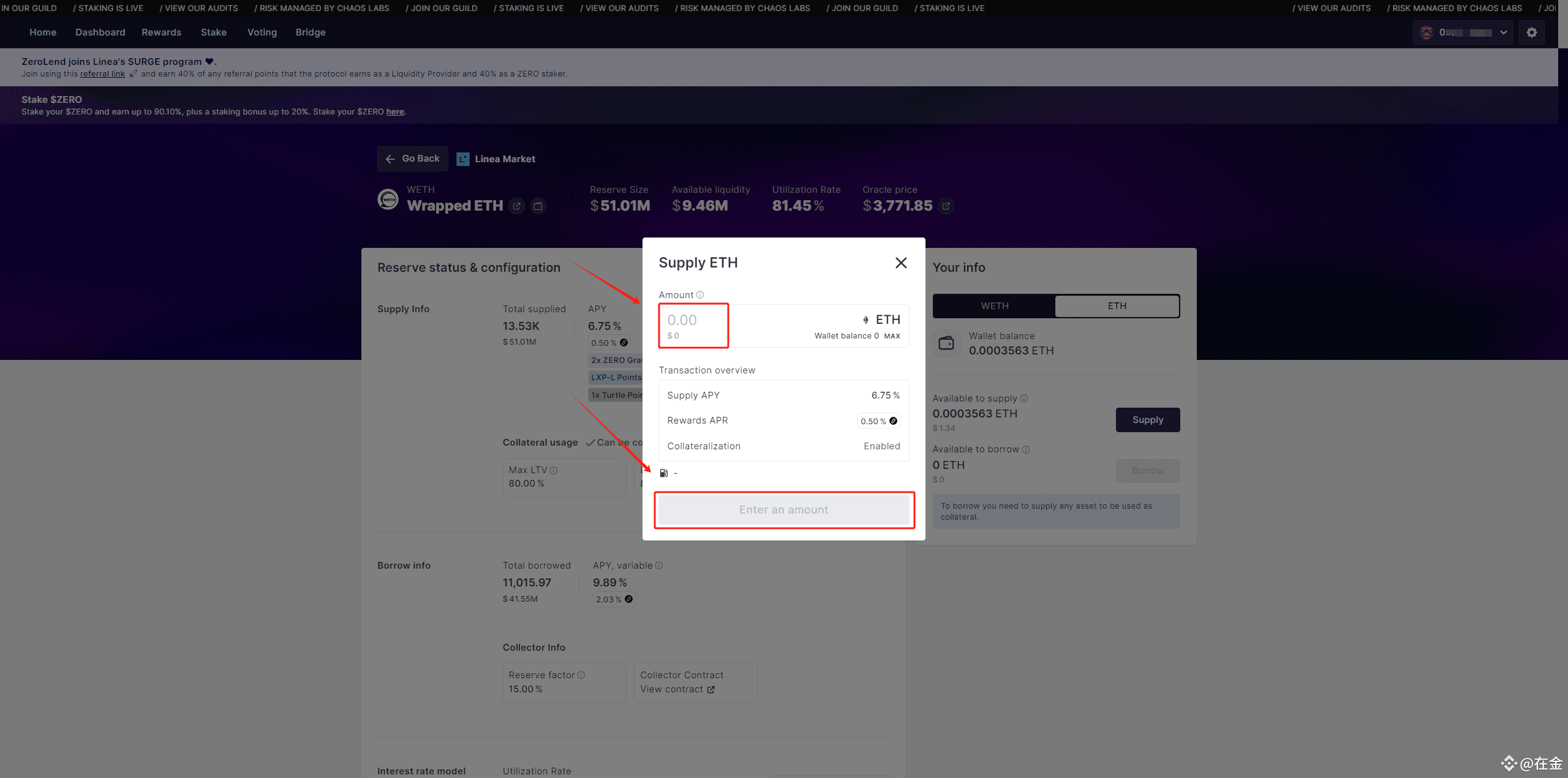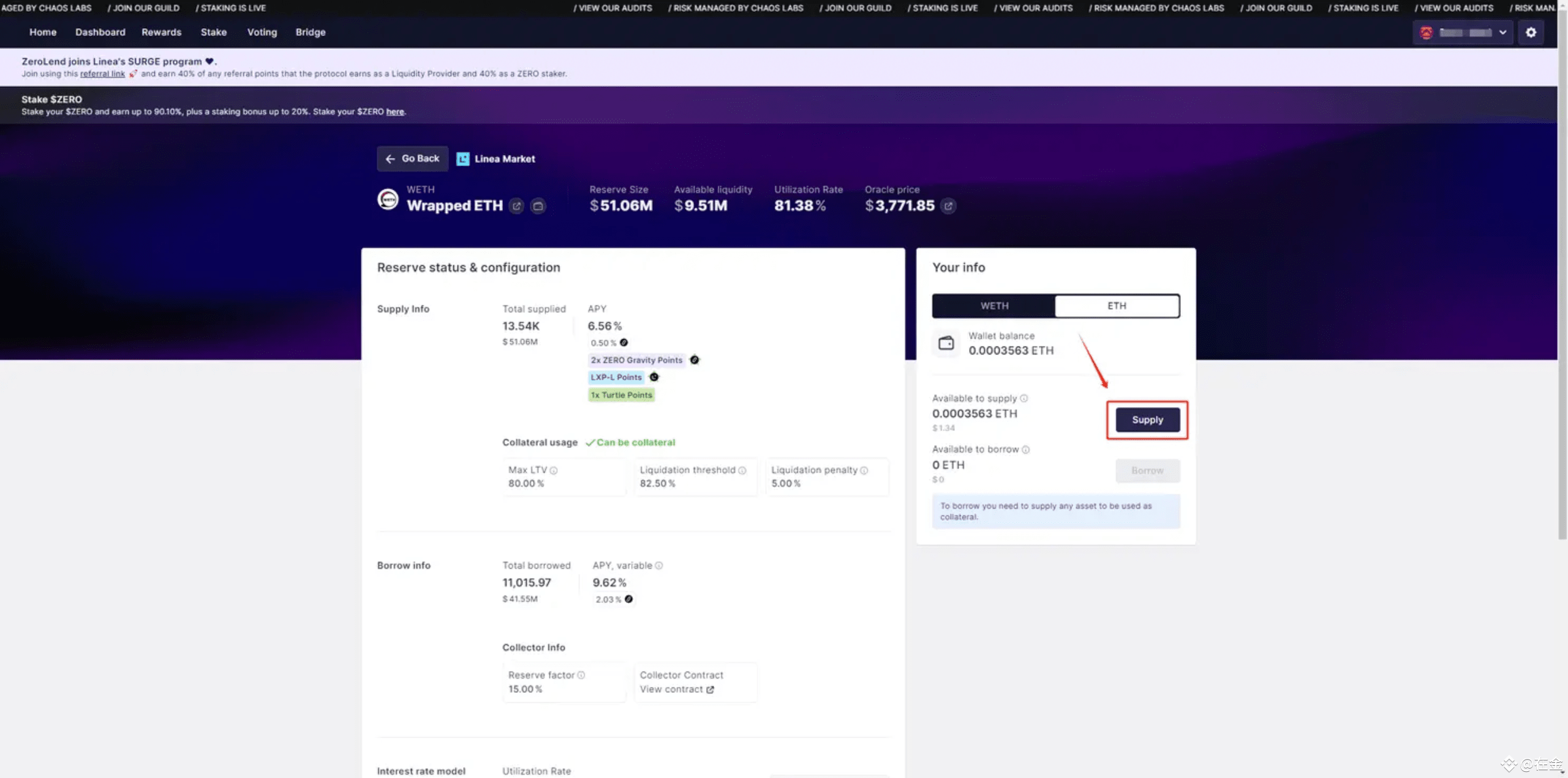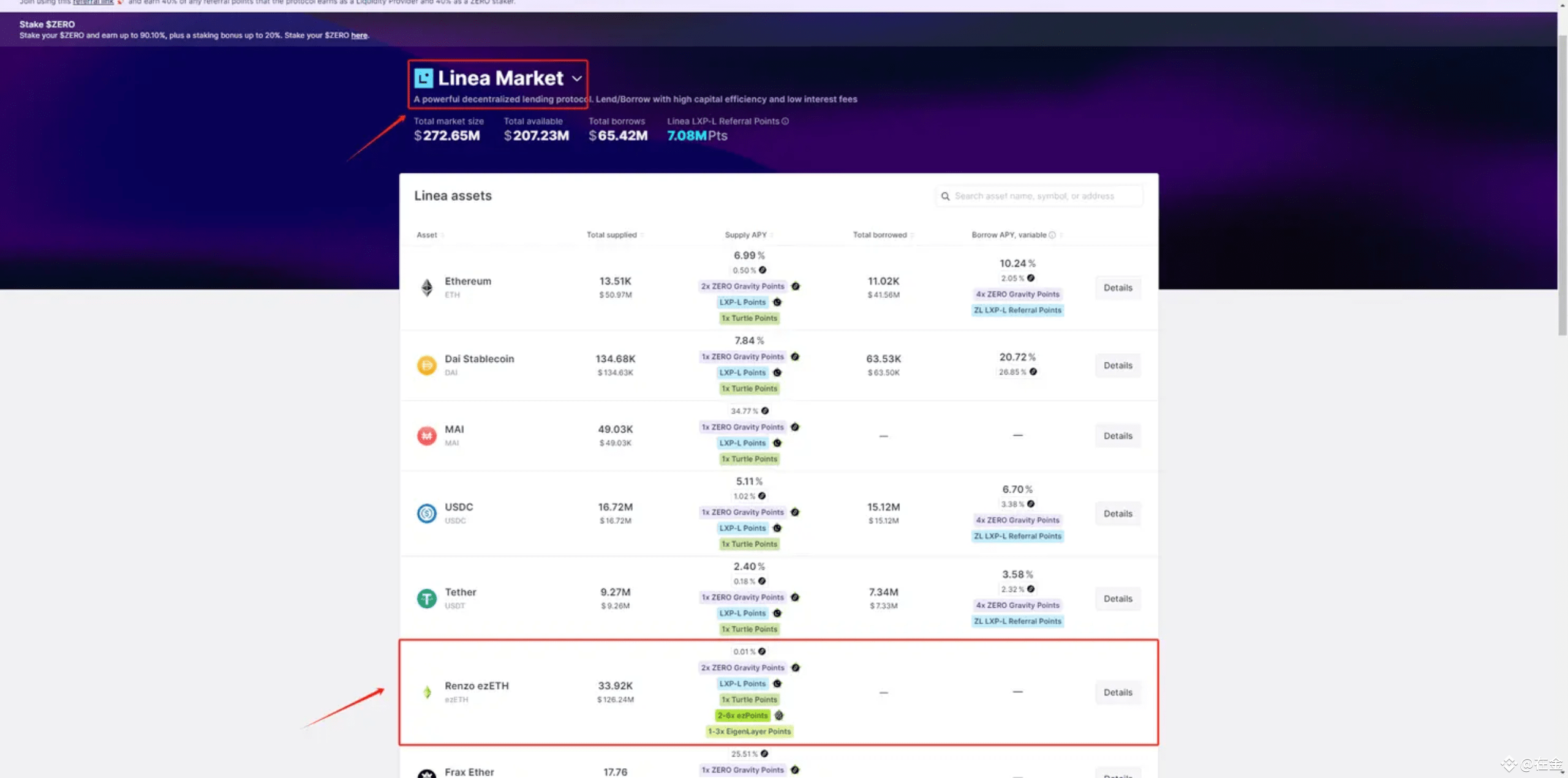依旧选择我们的Linea Market ,然后点击下面的ezETH