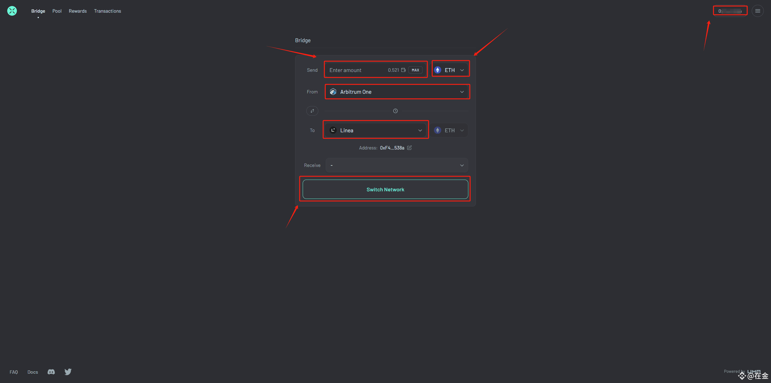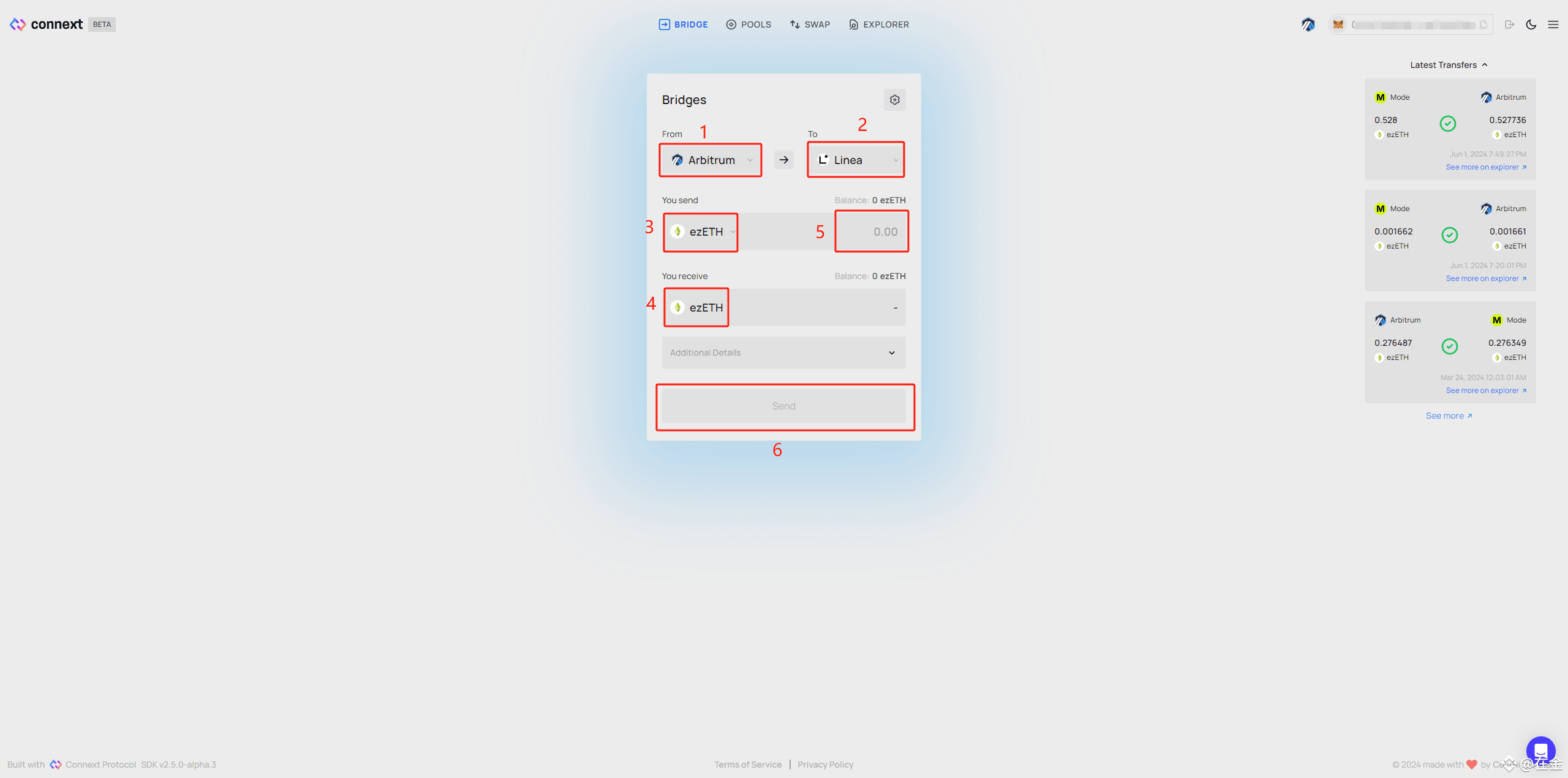确认之后稍等片刻,我们收到ezETH之后来到跨连桥: