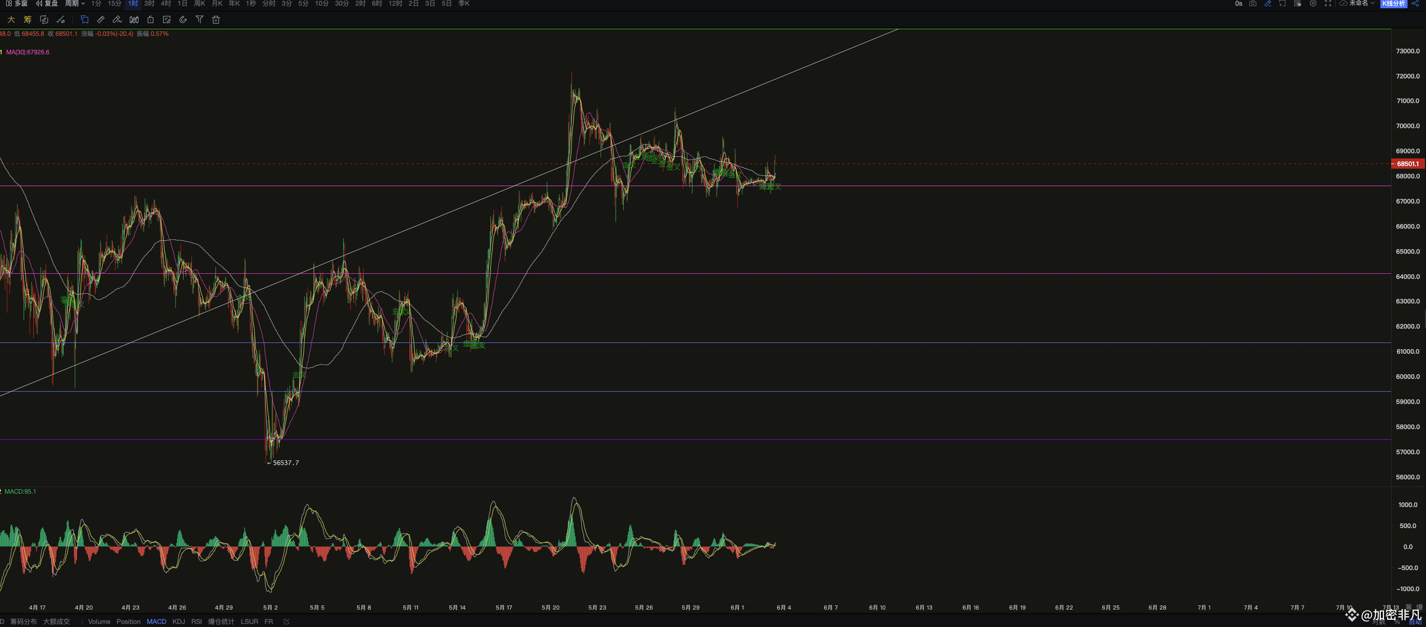 K线为王,趋势为皇,专注BTC、ETH现货合约多年,没有100%的方法,只有100%的顺势而为;每日全网更新宏观面文章,技术面讲解!