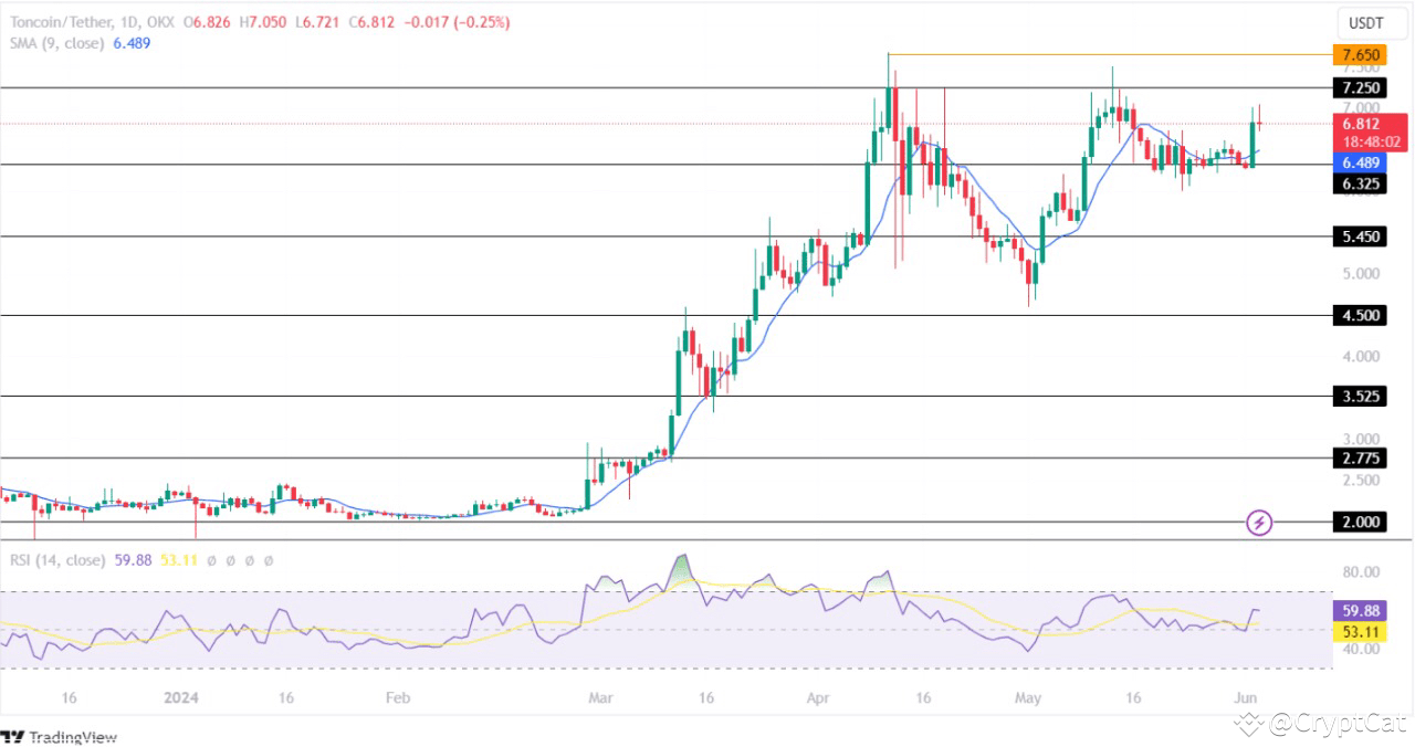 If the market continues to gain momentum, the Toncoin crypto price will break its important resistance level and prepare to retest its all-time high of $7.65. Conversely, a bearish reversal could pull the TON coin price toward its support level of $6.325.