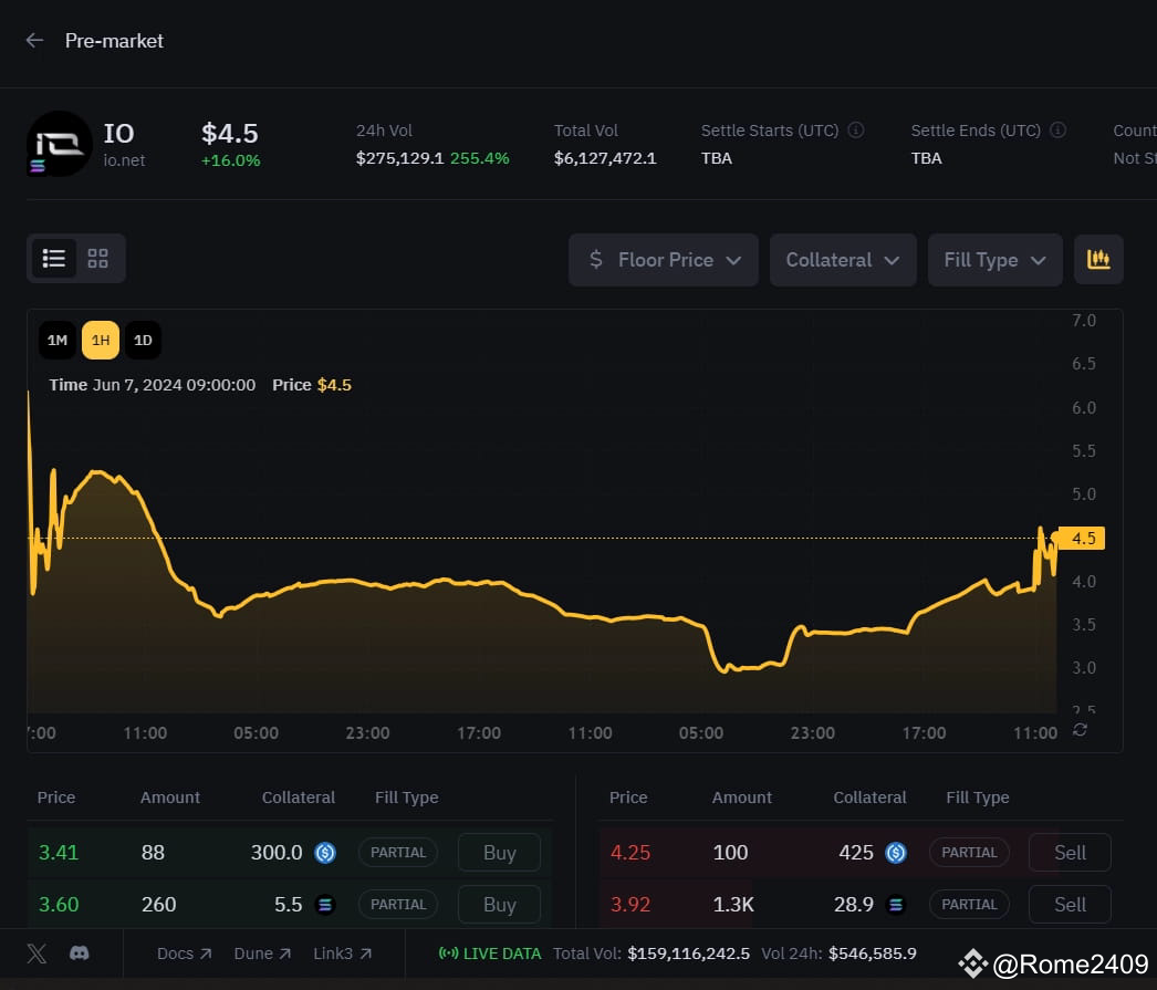 IO token đang giao dịch trên thị trường pre-market với mức giá dao động từ 2 USD đến 5 USD, được kỳ vọng tăng lên mốc 10 USD khi niêm yết.