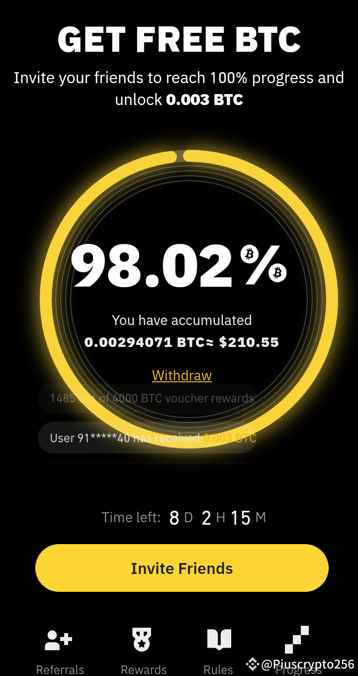 3. Earn Rewards: Once your progress bar hits 100% in a referral round, you earn a 0.003 BTC voucher. You can participate in up to six referral rounds, potentially earning a total of 0.018 BTC.