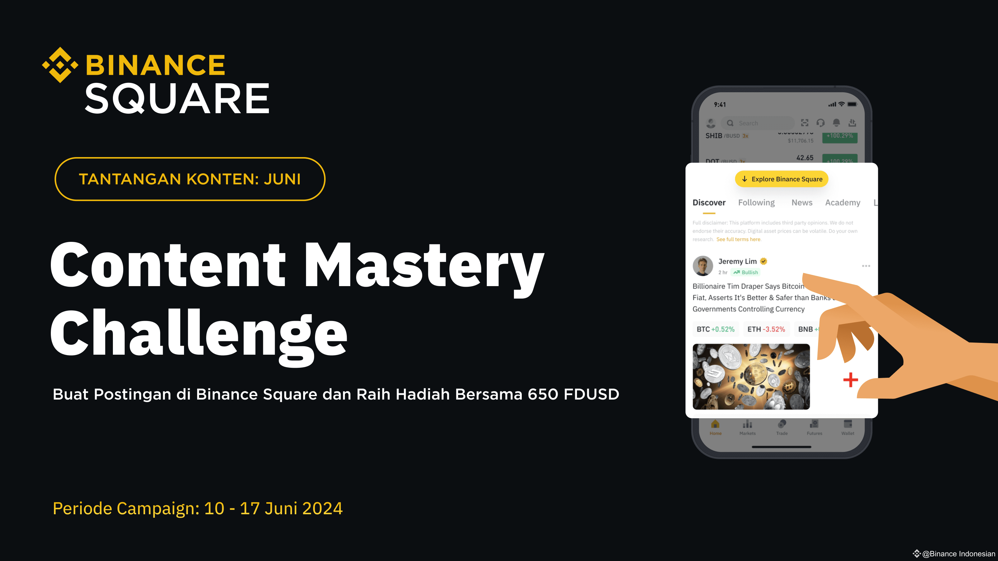 Bergabunglah dengan campaign “Tantangan Konten Mingguan “ Edisi bulan Juni dan menangkan total hadiah 650 FDUSD setiap minggu!