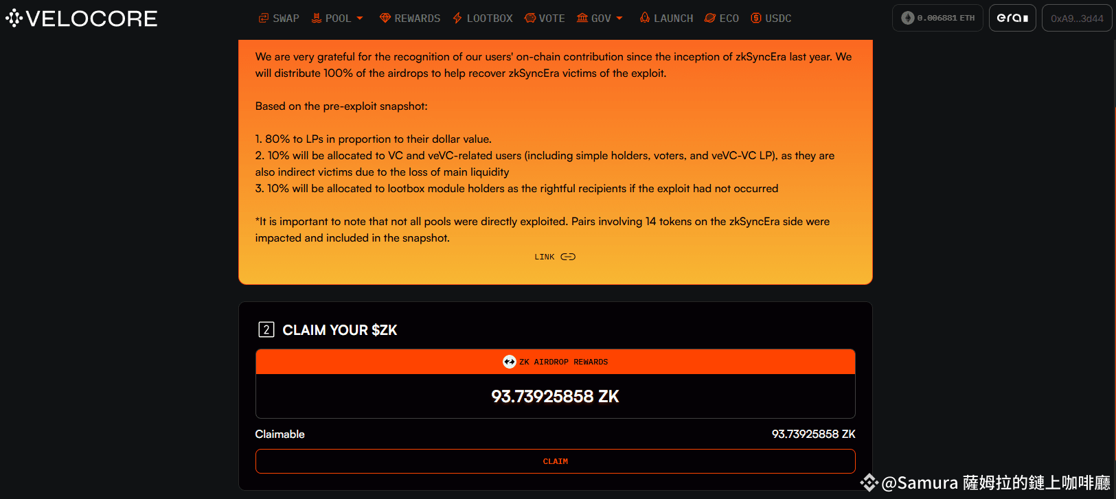 連結: https://zksync.velocore.xyz/zk-airdrop