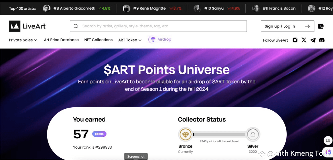 🥳 Earn points on LiveArt for eligible airdrop $ART token in Season 1 (points can take up to 48 hours to update)