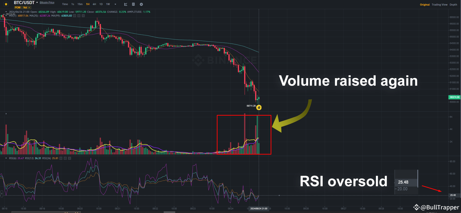 The Relative Strength Index (RSI) is at 25.99 (at the moment), showing the market is possibly oversold. This usually means a bounce back might be close.
