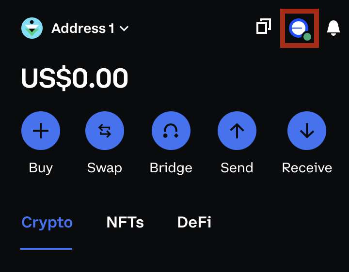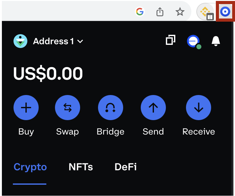 1. Spusťte rozšíření prohlížeče Coinbase Wallet a přihlaste se ke svému účtu.