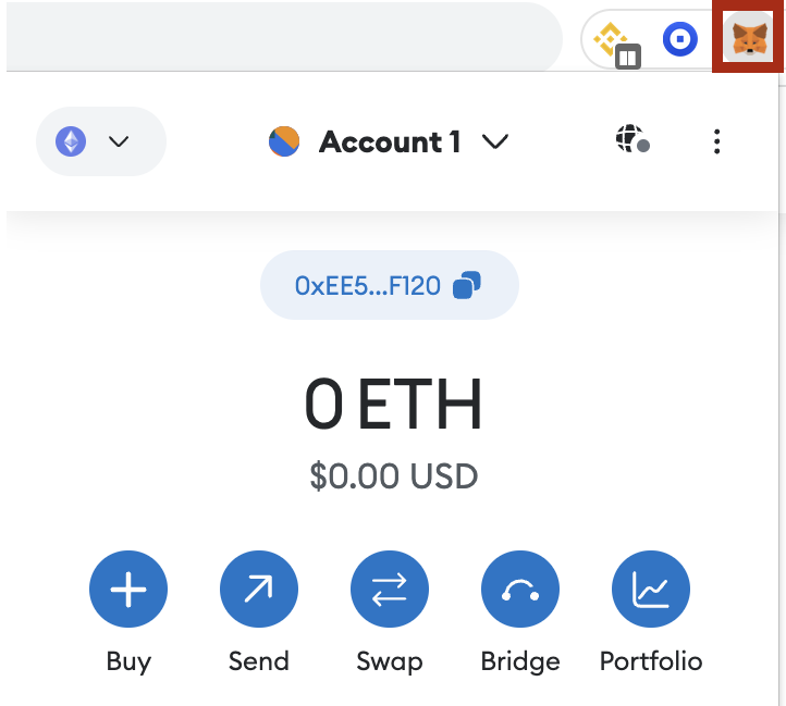 1. Spusťte rozšíření prohlížeče MetaMask.