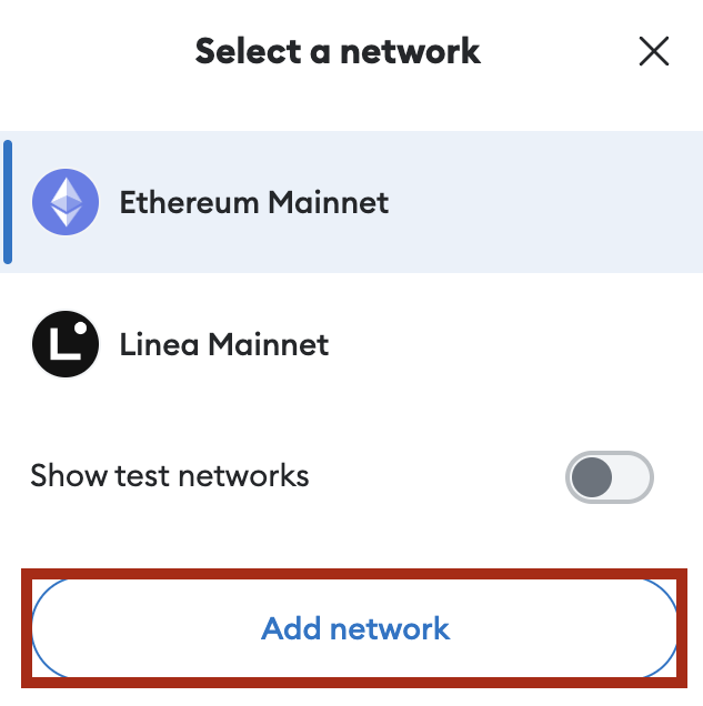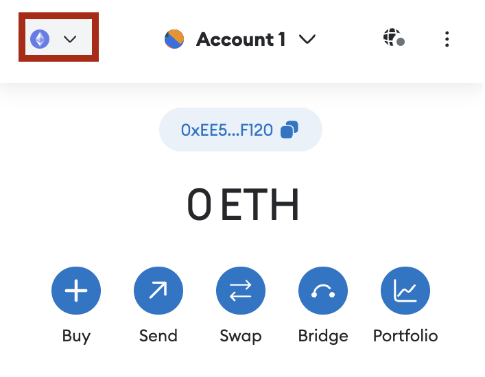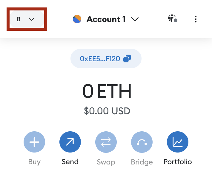2. Kliknutím na rozbalovací tlačítko v horní části rozšíření otevřete rozbalovací nabídku pro výběr sítě.