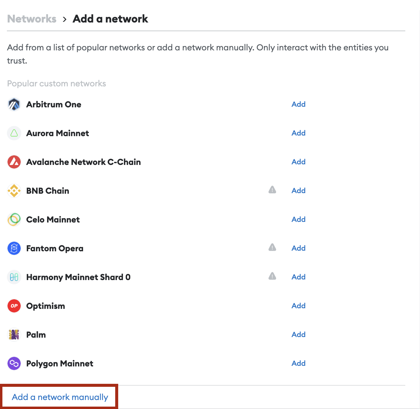 3. Klikněte na „Add network“ (Přidat síť).