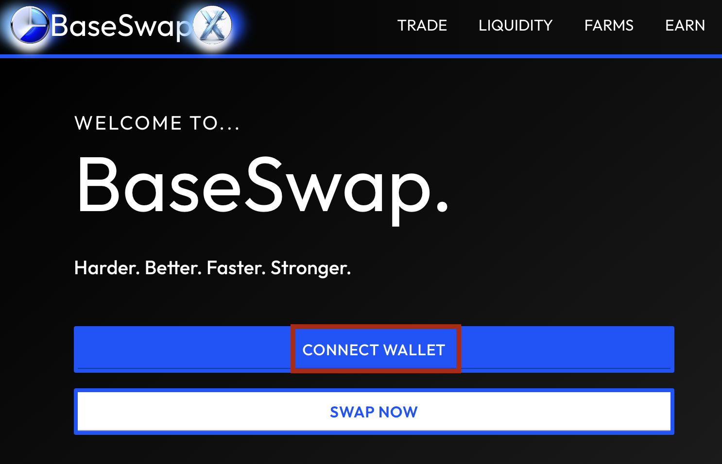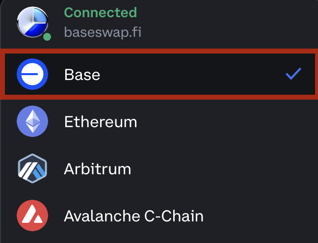 2. Připojte se k aplikaci pomocí peněženky Coinbase Wallet (v tomto příkladu použijeme BaseSwap).