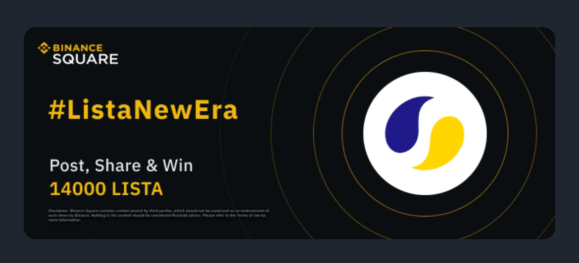 Veröffentlichen Sie Inhalte auf dem Platz mit dem Hashtag #ListaNewEra, um die Chance zu haben, Belohnungen zu teilen. Wir freuen uns auf Ihre Ideen und Gedanken zur Zukunft des $LISTA -Ökosystems.
