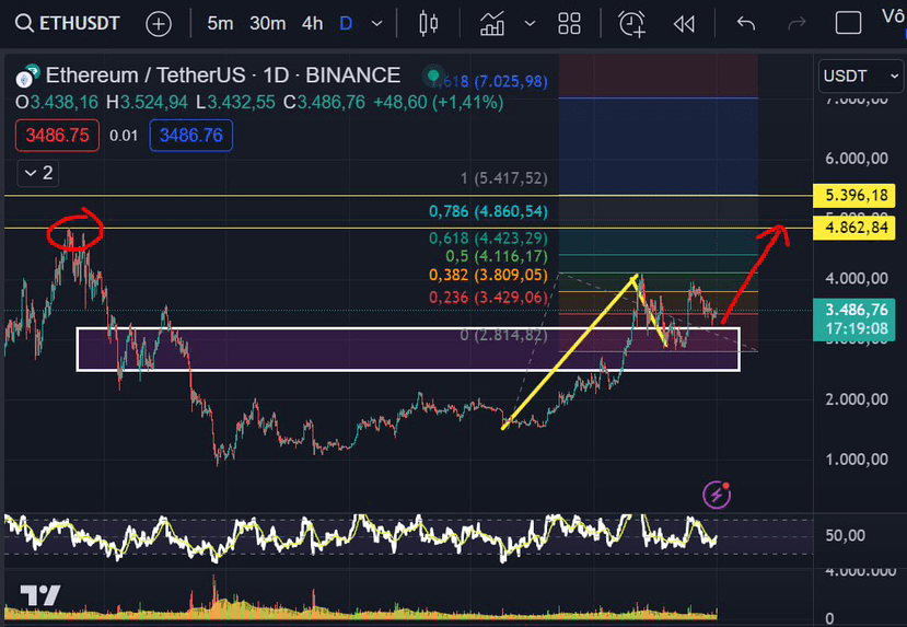 - Wenn der aktuelle Rhythmus genau Welle 3 ist, gibt es die folgenden TP-Werte, die zum Goldenen Schnitt zurückkehren, ebenfalls mit dem alten Höchstwert übereinstimmen und sogar einen höheren Höchstwert in der Fibo 1,0-Zone von 5k3 erzeugen.
