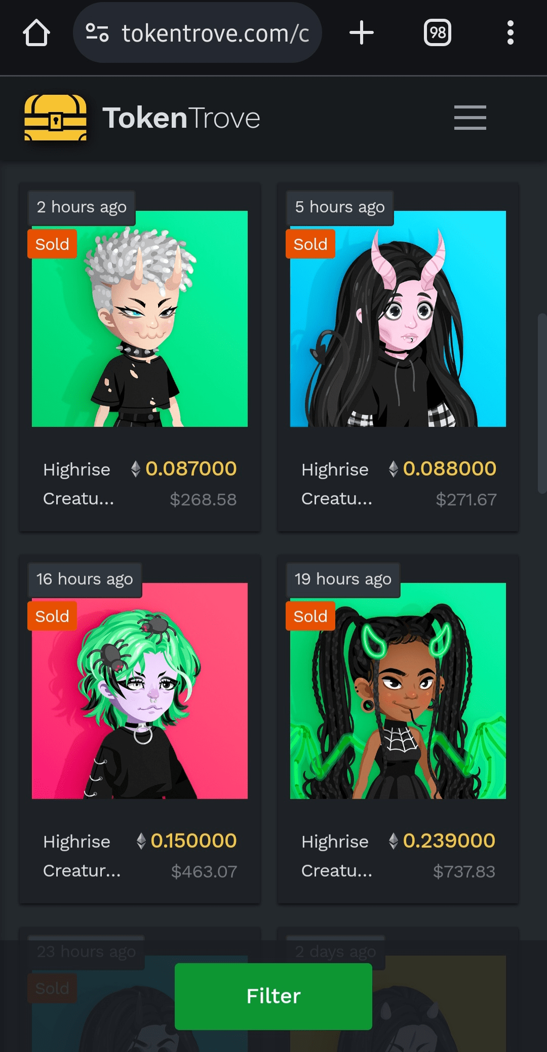 https://tokentrove.com/collection/Highrise?tab=activity&time=week