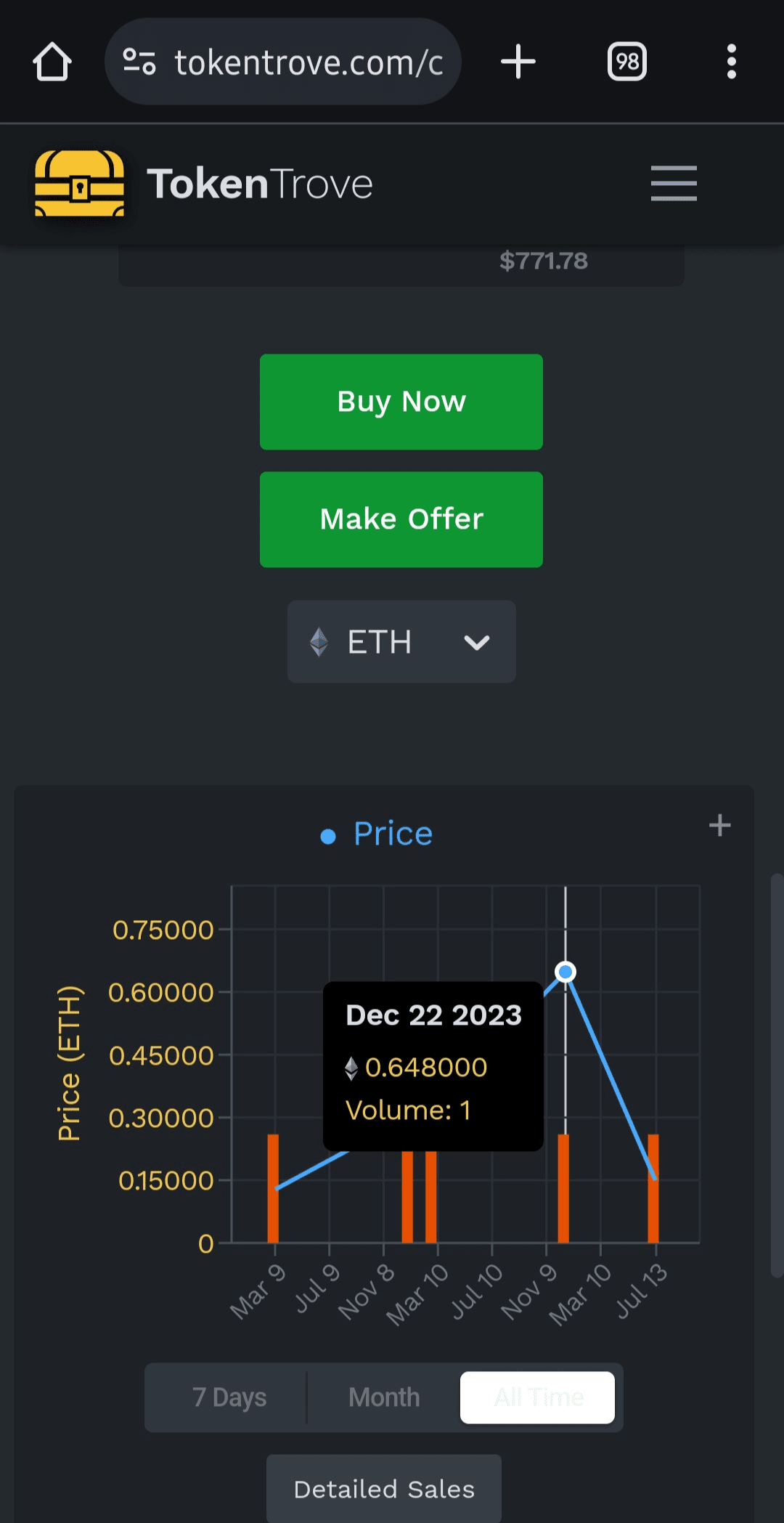 Wenn Sie möchten, können Sie versuchen, die Nachfrage nach NFTs anhand ihres Preisdiagramms zu ermitteln