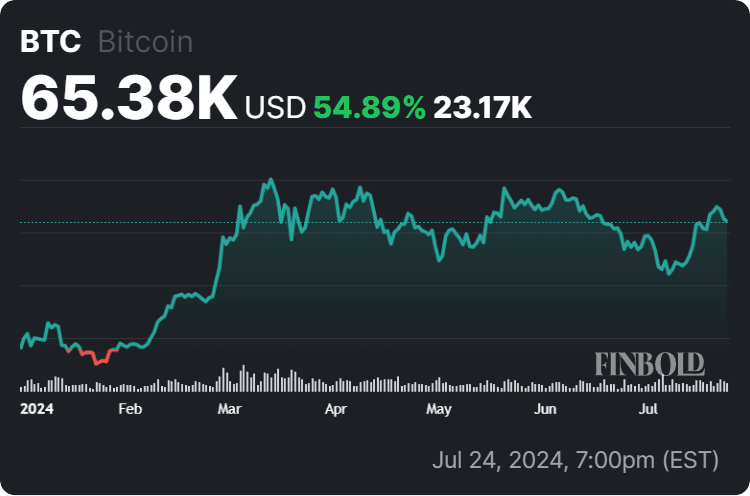 Am 25. Juli 2024 wird Bitcoin bei 65.380 $ gehandelt, was zwar die jüngsten Rückgänge, aber einen deutlichen Anstieg seit Jahresbeginn zeigt. Dies spiegelt die inhärente Volatilität von Bitcoin wider, aber insgesamt eine starke Performance.