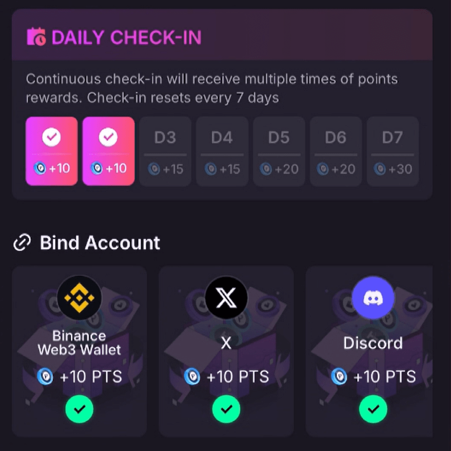 Schließlich sehen wir, dass wir für die wöchentliche Aufgabe die offizielle Website des Projekts aufrufen müssen, um die mobile App nicht mehr verwenden zu können Sie werden aufgefordert, den eingangs genannten CARV-ID-Domainnamen zu registrieren. Dies kostet etwa 5 U. Sie müssen also genügend Geld bereitstellen, um den Vorgang erfolgreich durchführen zu können Finden Sie heraus, dass es einen zusätzlichen SOUL-Punkt gibt, der in eine $CARV-Belohnung umgewandelt wird, die mit den Binance-Aufgabenpunkten identisch ist. Anders, SOUL hat mehr Funktionen und reichhaltigere Belohnungen. Das Projektteam hat vier Möglichkeiten bereitgestellt, SOUL zu erhalten, die ähnlich sind Um sich anzumelden, gibt es vier Ketten, darunter Ronin (kostenloses Casting), opbnb, zkSync Era und Linea. Wenn Sie keine Währungsfreunde haben möchten, müssen Sie jeden Tag vorbeikommen und sich anmelden Wir haben gerade erwähnt, dass Sie verschiedene Konten und Wallets verknüpfen müssen. Je höher das Wallet-Guthaben, desto höher die tägliche Belohnung.