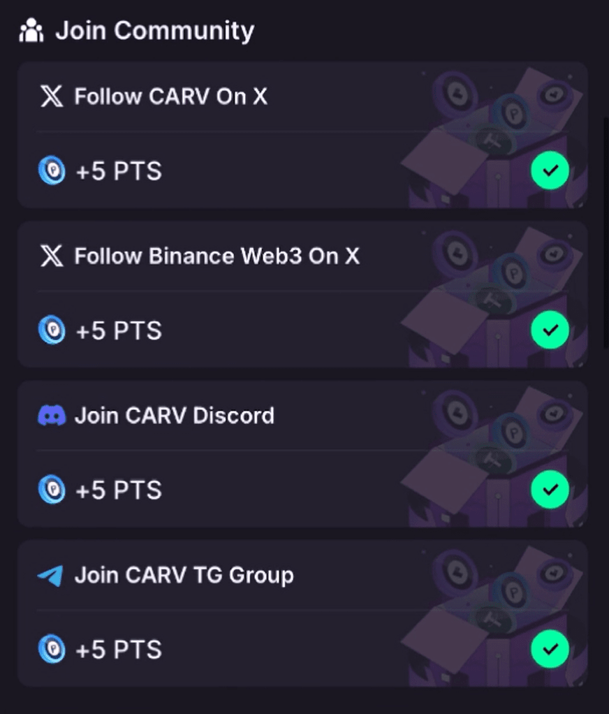 Binances jüngstes Airdrop-Event ist CARV, ein beliebtes Blockchain-Gaming-Unternehmen, das durch die Teilnahme an der Projektinteraktion seine erste Spielplattform gestartet hat Erhalten Sie Aktivitätsbelohnungen und ermöglichen Sie den Spielern, ihre Spielidentität zu bewerten. Es kann gesagt werden, dass es der zukünftige Star der Kettenspiele ist, an denen es teilnehmen kann Es gibt unzählige Aufgaben, nur um es den Spielern zu ermöglichen, mit Kosten von nur 5U riesige Vermögenswerte auf der Plattform anzusammeln, und CARV ist auch ein Projekt, in das Bruder J kürzlich investiert hat. Es wird nicht nur nicht langweilig, sondern auch Wege finden, die Punkte aus der Aktivität zu maximieren und auch erfolgreich zu erreichen, was die Projektpartei von den Spielern erwartete.