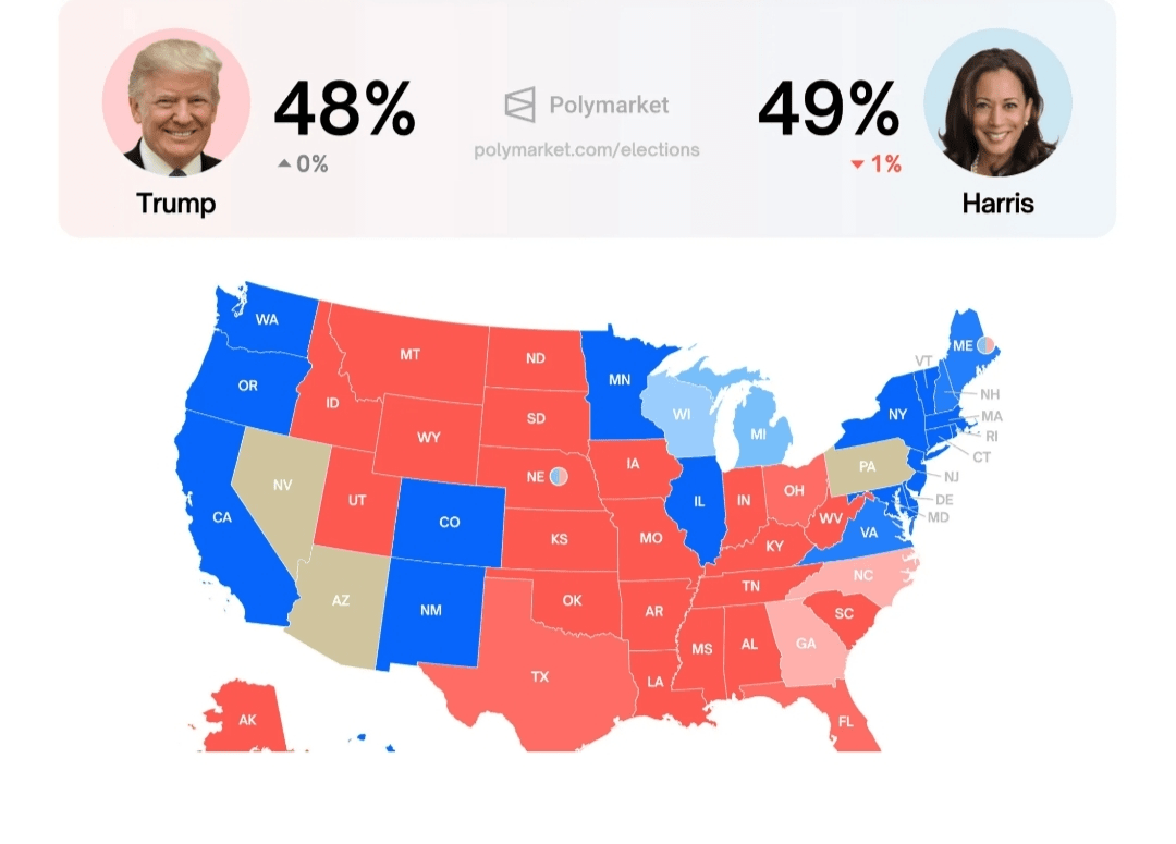 Kamala Harris‘ Chancen, die Präsidentschaftswahl 2024 zu gewinnen, sind gesunken, wobei Polymarket-Daten eine Verschiebung zugunsten des ehemaligen Präsidenten Donald Trump anzeigen. Derzeit liegt Trump auf der Plattform mit 48 % gleichauf, was das wachsende Vertrauen in seinen möglichen Sieg trotz seiner rechtlichen Herausforderungen widerspiegelt. Harris, die als Schlüsselfigur der Biden-Regierung gilt, sieht sich nun zunehmender Skepsis hinsichtlich ihrer Chancen gegenüber, möglicherweise aufgrund von Bedenken hinsichtlich ihrer Sichtbarkeit und Wirksamkeit im Amt. Diese Verschiebung der Wettquoten unterstreicht die Volatilität der bevorstehenden Wahl, bei der die Wählerstimmung offenbar in Richtung Trump tendiert.#kamlaharis