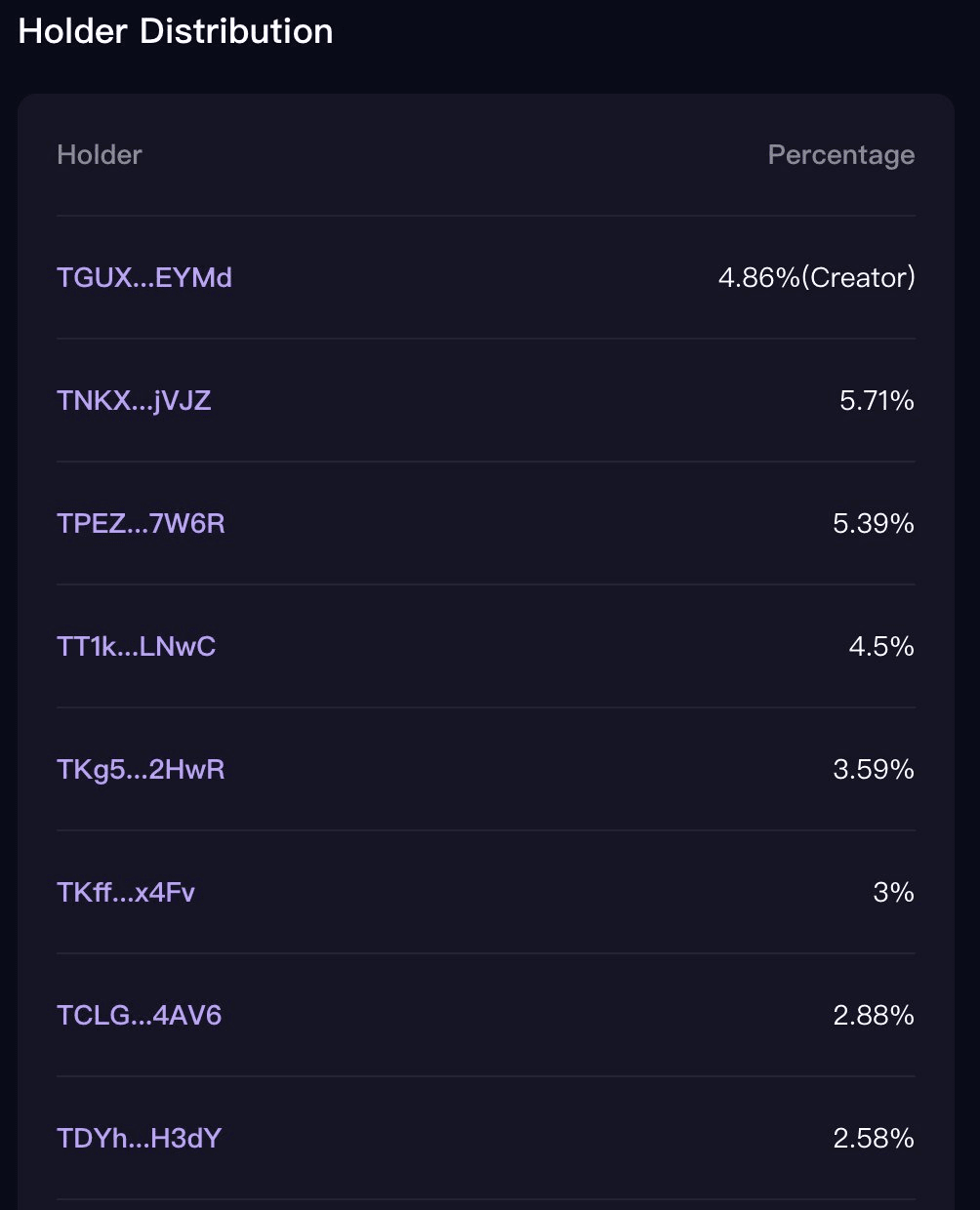 Gehen Sie auf die Seite des Tokens und sehen Sie, welchen Prozentsatz des Angebots der Ersteller besitzt.
