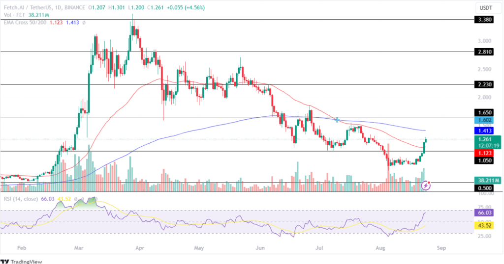 Der FET-Preis zeigte weiterhin eine bullische Preisentwicklung und stieg innerhalb von 24 Stunden um 19,15 % und in der vergangenen Woche um 54,36 %. Darüber hinaus legte er im vergangenen Monat um 7,43 % zu und weist seit Jahresbeginn eine Rendite von +42,94 % auf.