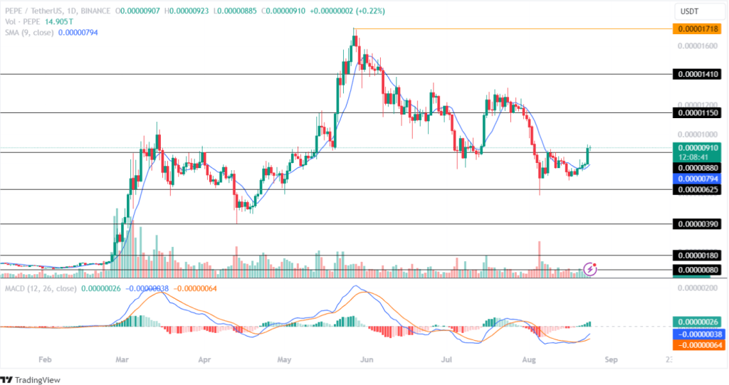 Wenn der Markt den Pepe-Preis über dem Unterstützungsniveau von 0,00000880 USD hält, werden sich die Bullen darauf vorbereiten, in Richtung seines oberen Widerstandsniveaus von 0,00001150 USD zu gehen. Umgekehrt könnte eine bärische Umkehr den Preis in Richtung seines Tiefs von 0,00000625 USD ziehen.