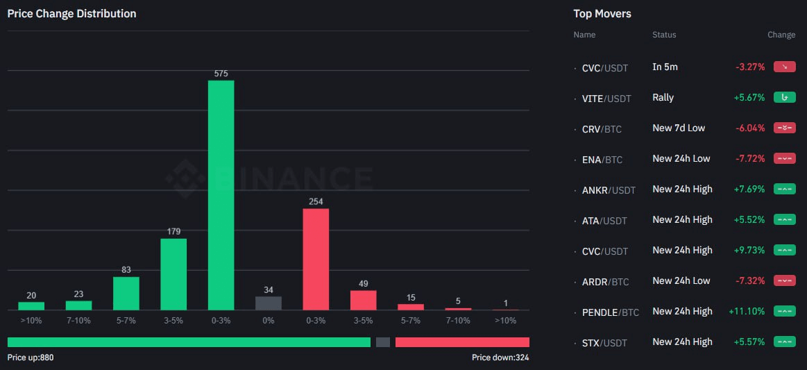 LOKA, SUI und PENDLE führen den Markt als größte Gewinner an. Bitcoin hat sich erfolgreich erholt, nachdem es ein höheres Tief gebildet, erneut getestet und über dem horizontalen Unterstützungsniveau gehalten hatte. Das nächste wichtige Ziel für die Bullen ist ein Ausbruch über die 60.000-Dollar-Marke, was die Fortsetzung des Aufwärtstrends signalisieren würde.