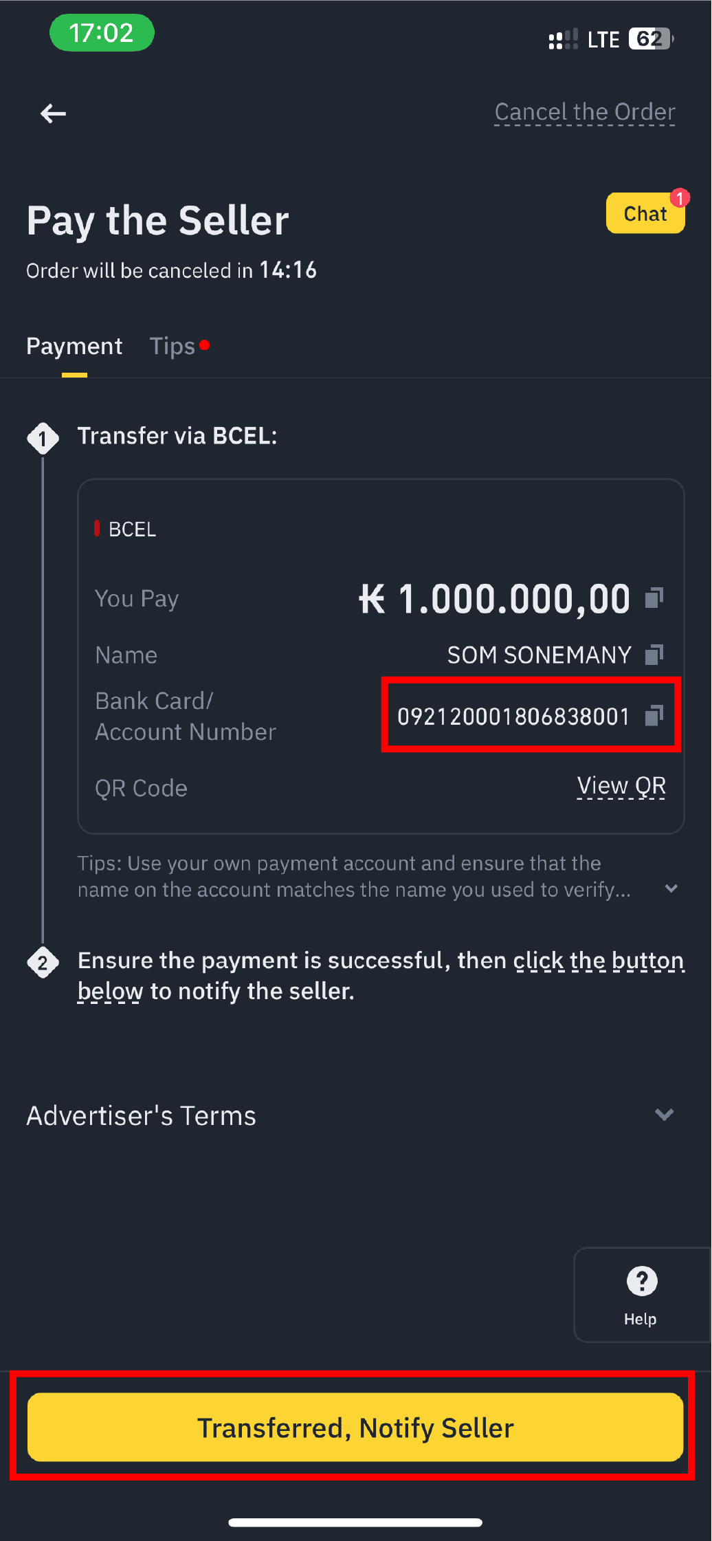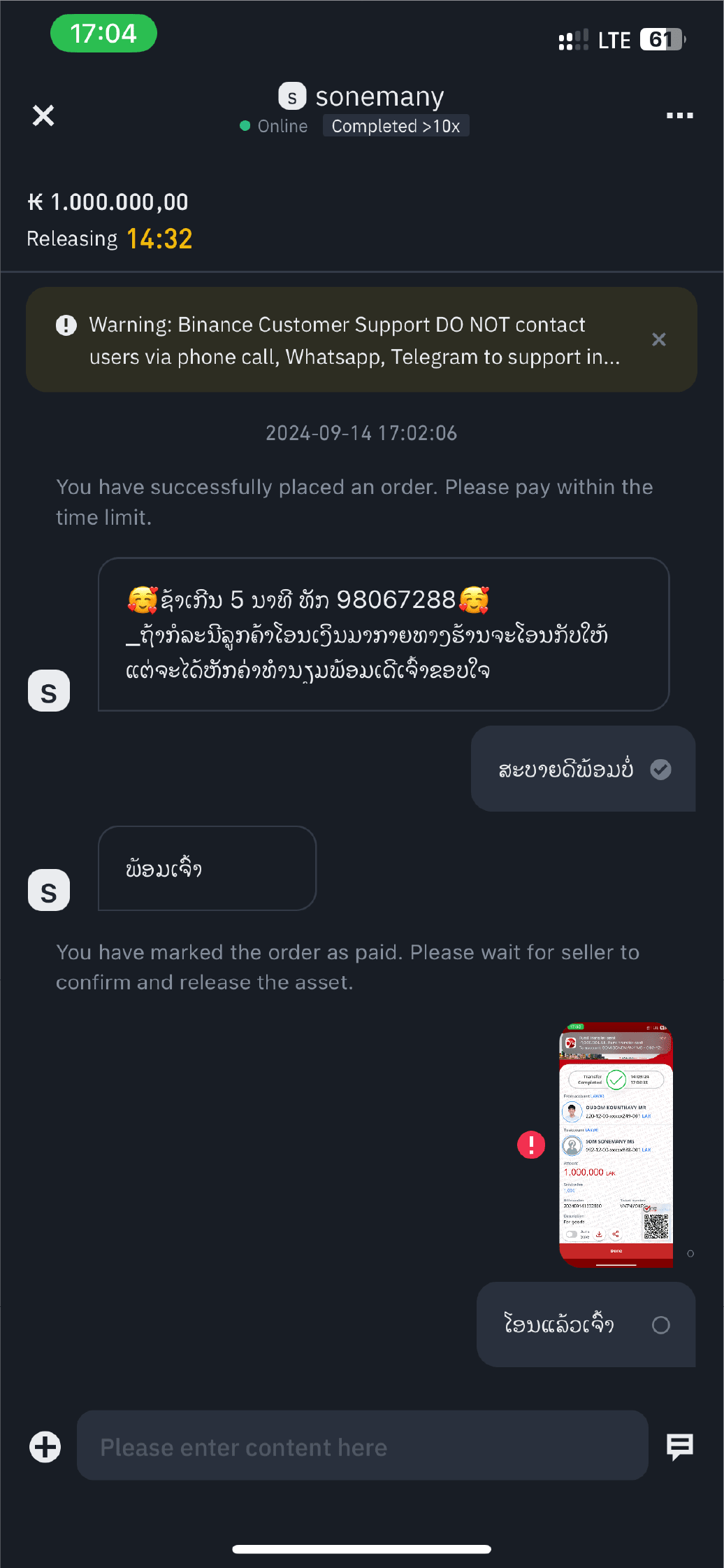 6. Kopieren Sie dann die Kontonummer des Verkäufers oder verwenden Sie den QR-Code des Verkäufers und überweisen Sie das Geld als Sicherheit.