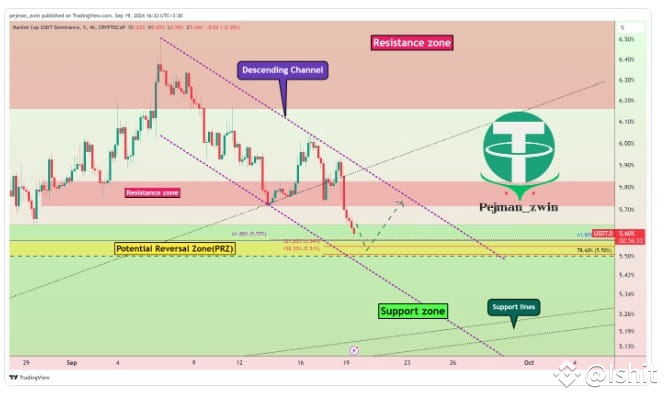 Currently, USDT.D% is near its support zone, along with the lower line of the descending channel and the PRZ. An anticipated rise in USDT.D% could lead to downward pressure on Bitcoin's price.
