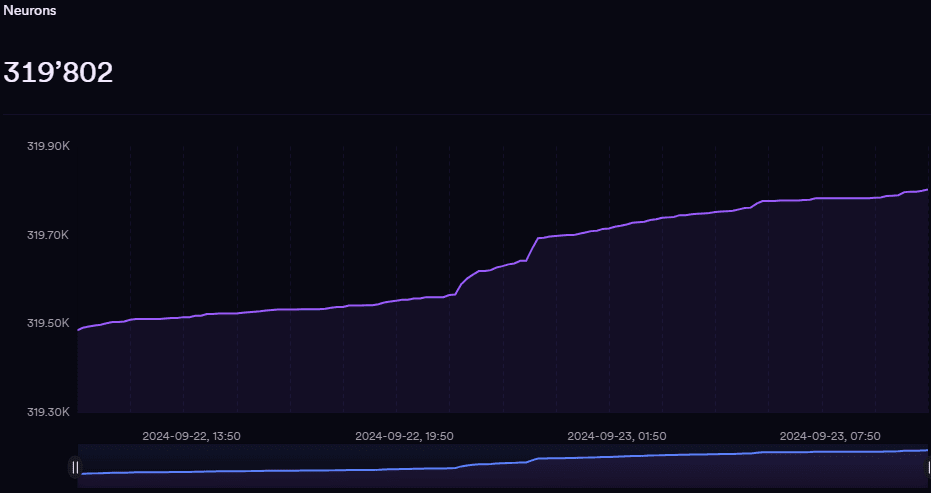 Wir erreichen fast 320.000, während der IC in den letzten 24 Stunden rund 382 Neuronen aufnehmen konnte, um den Proof Of Useful Work [PoUW]-Konsens-Algorithmus zu sichern.