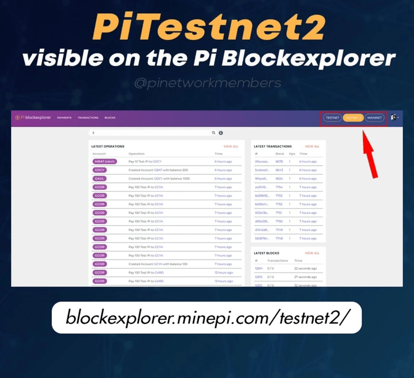 🍀🍀Das Pi Testnet2 ist jetzt im Pi Blockchain Explorer sichtbar und stellt eine bedeutende Entwicklung für das Pi-Netzwerk dar. Dieses neue Testnet ist wichtig zum Testen des Netzwerkumschaltmechanismus, der Knoten den Übergang vom Testnet zum Mainnet ermöglicht.