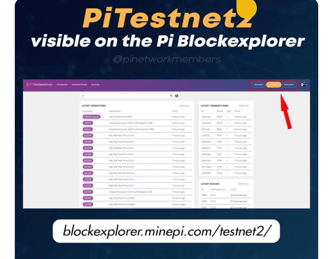 🍀🍀 Pi Testnet2 ist jetzt im Pi Blockchain Explorer live und markiert einen entscheidenden Meilenstein für Pi Network. Dieses neue Testnetz dient zum Testen des Netzwerkumschaltmechanismus, der es Knoten ermöglicht, nahtlos vom Testnetz zum Mainnet zu wechseln.