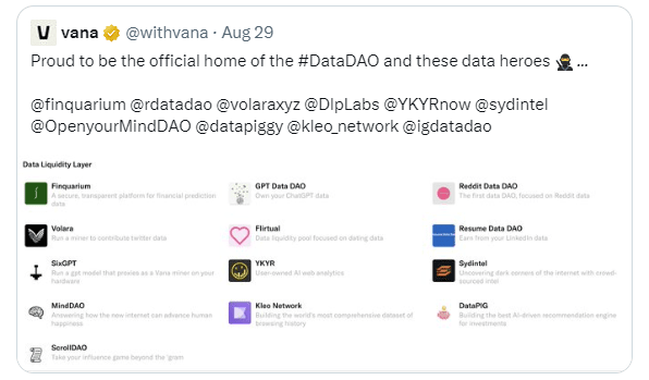 Vana ist ein verteiltes Netzwerk für private, benutzereigene Daten, das darauf ausgelegt ist, benutzereigene KI zu ermöglichen.