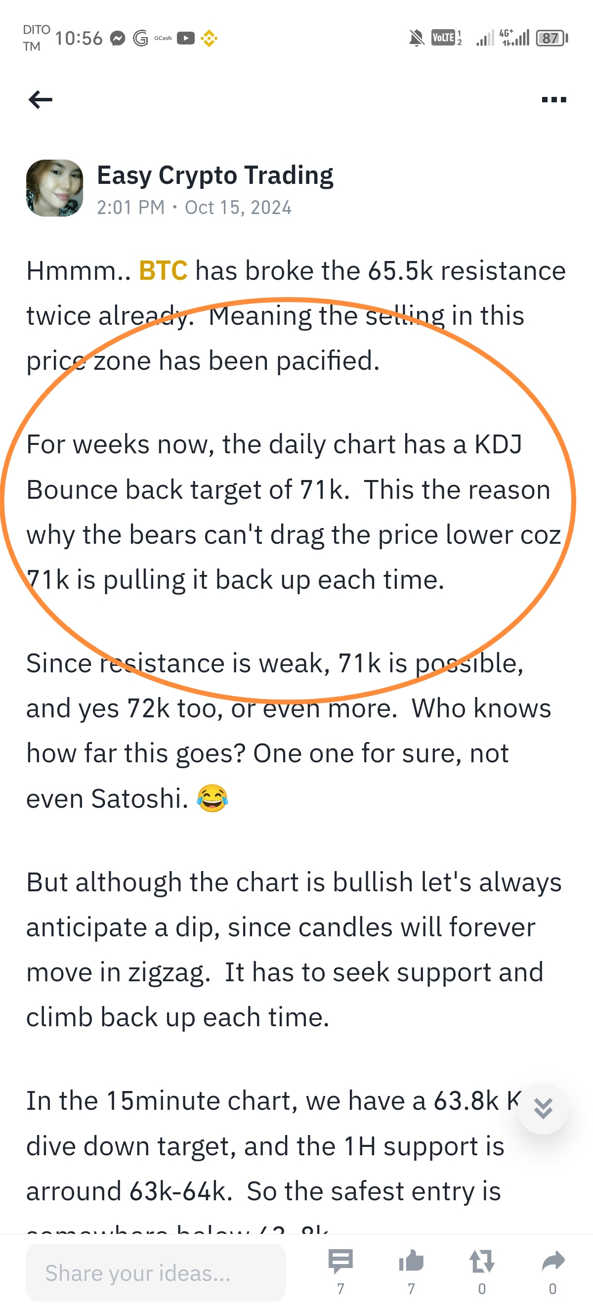Hier ist einer meiner Beiträge von vor ein paar Tagen. Damals handelte BTC bei 65k. Lies unten weiter.