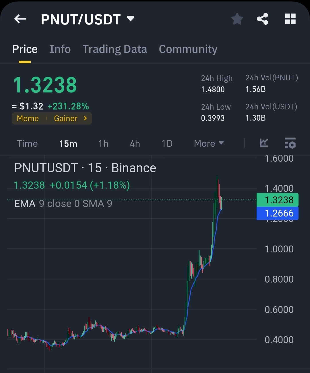 Das Erreichen von 10 USD für PNUT/USDT wäre ein bedeutender Meilenstein, insbesondere angesichts des aktuellen Preises von etwa 1,32 USD, wie im Bild gezeigt. Lassen Sie uns einige Schlüsselfaktoren aufschlüsseln, die dieses Ziel beeinflussen könnten: