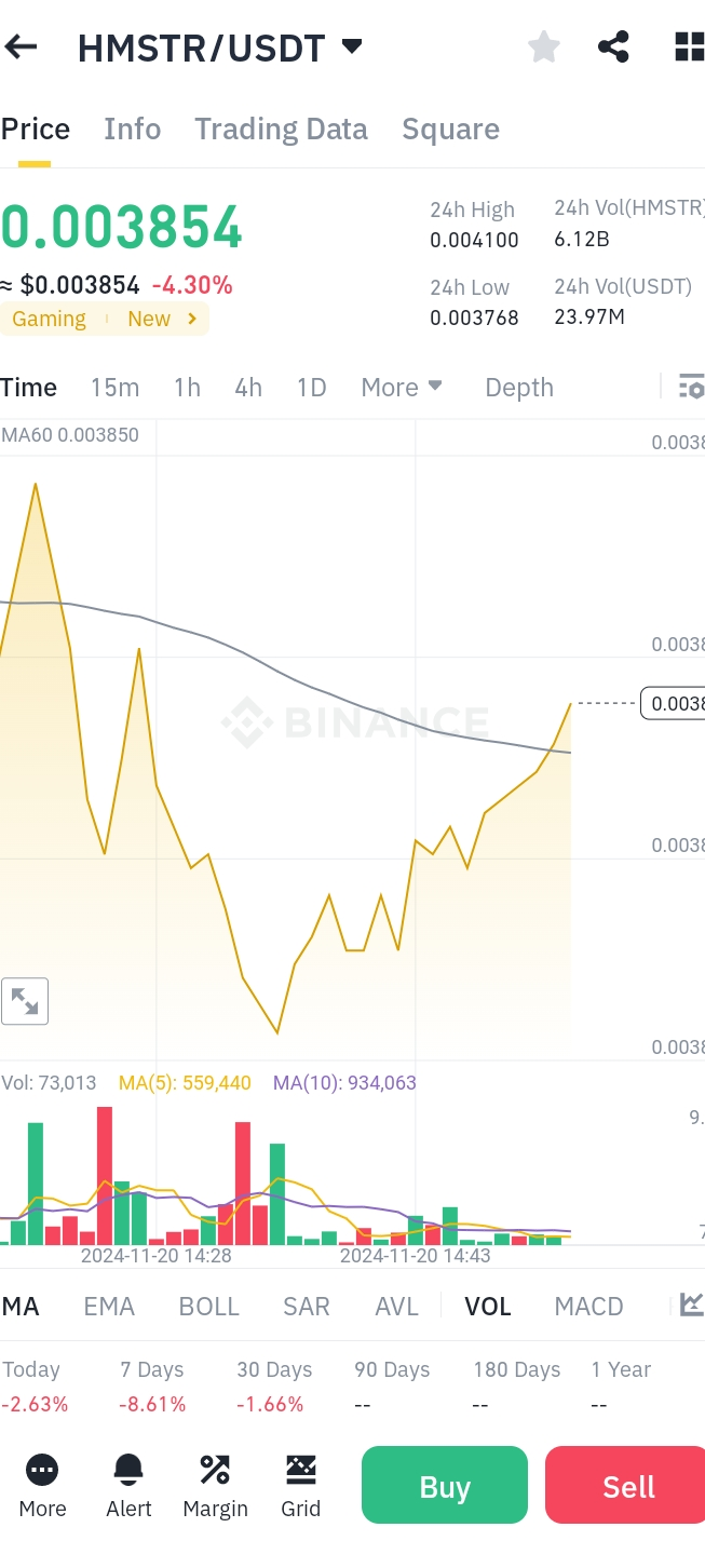 1. Preisbewegung: Der aktuelle Preis liegt bei 0.003854, leicht unter dem 60-Tage-Durchschnitt (**MA60: 0.003850**), was auf gemischtes Momentum hinweist.